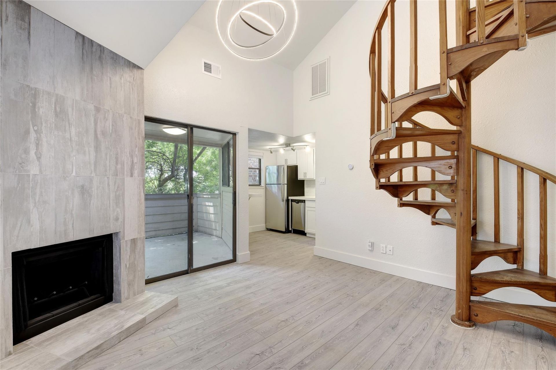 Move-in special: Free April. Like nothing else! Oversized loft fully renovated with cabinets & high-end slab countertops in kitchen, bar & bathroom; Amazing tile work throughout; Vinyl wood flooring; modern finishes; Large quiet balcony; Refrigerator, Washer & dryer included; Stainless steel appliances; Plumbing & light fixtures; 2 faux wood blinds; Wooden spiral staircase has character; Walk in closet. Must view in person prior to application. Email TAR application to agent, app fee w cc over phone.