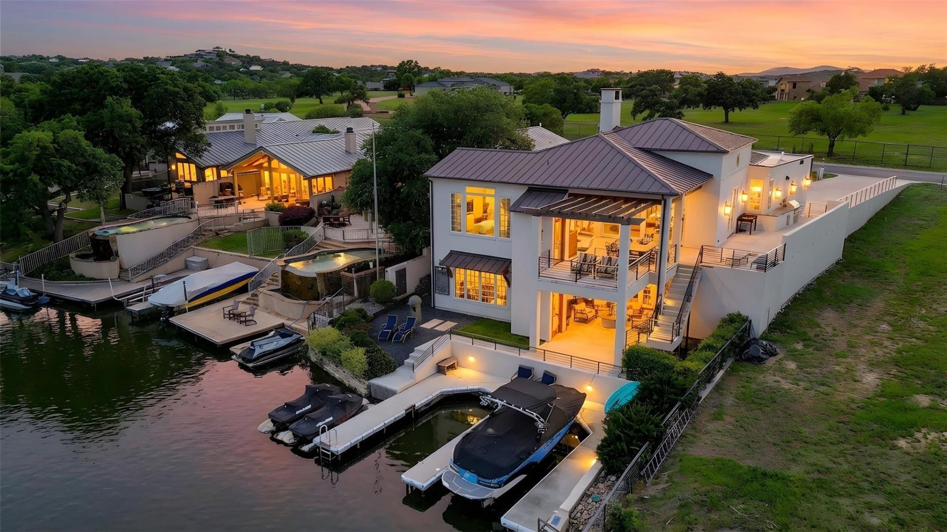 Welcome to 2807 Fault Line in the coveted waterfront enclave of Horseshoe Bay?a striking contemporary retreat set along the shimmering shores of Lake LBJ. Designed with both luxury and versatility in mind, this exceptional four-bedroom, four-bath residence offers a rare dual-living concept, with each level functioning as its own private haven?complete with a spacious living area and two beautifully appointed bedrooms. The main level showcases an elegant primary suite alongside a guest retreat, while the lower level mirrors this thoughtful layout, creating an ideal setting for hosting, multigenerational living, or effortless privacy for guests. Outdoors, the lifestyle is nothing short of extraordinary. Two concrete boat slips, dual jet ski ramps, and the inclusion of both ski and fishing boats?as well as jet skis?deliver a true turnkey lakefront experience. Entertain with ease from expansive upper and lower patios, a fully equipped outdoor kitchen, and a private wellness escape featuring a sauna and cold plunge. Inside, the open-concept design is anchored by a chefs kitchen with a six-burner gas range, generous prep space, and an oversized pantry, while a sophisticated wet bar with wine refrigeration and ice maker seamlessly serves the main living and dining areas. Offered furnished if desired and enhanced by the rare luxury of a PRIVATE ELEVATOR?an exceptional amenity in the area?this residence represents the pinnacle of refined lakefront living. Spray foam insulation