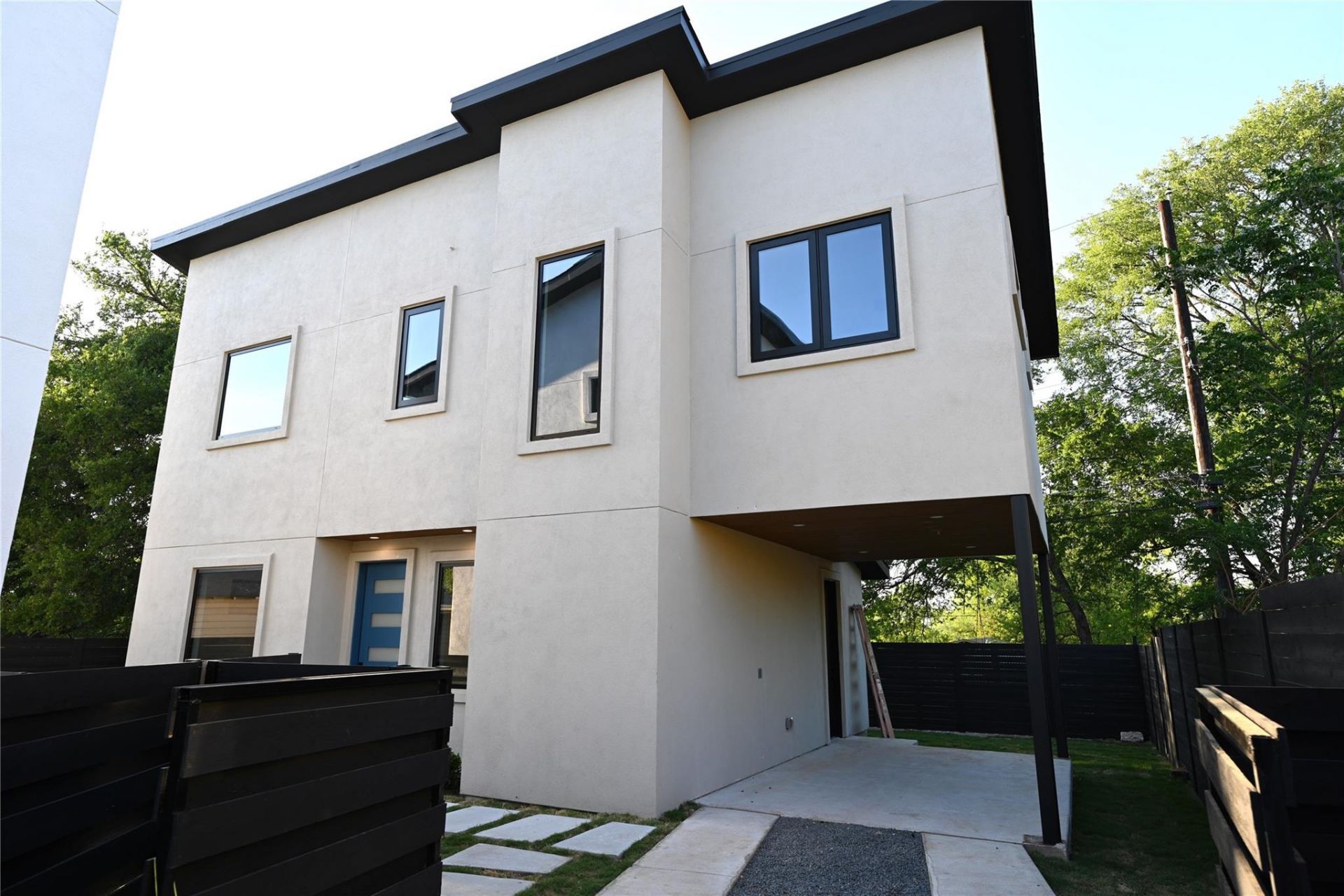 Standout new construction in the vibrant East MLK neighborhood. Featuring a striking stucco and contemporary exterior, this home brings a fresh architectural element to the area?reflecting Austins unique blend of modern style and character.Inside, the thoughtfully designed open floor plan offers both efficiency and functionality, highlighted by European-style kitchen cabinetry, thermal break aluminum windows, cathedral ceilings on the second floor, and private en-suite bathrooms for every bedroom. Enjoy city views as you walk west along the street.Ideally located in one of Austins trending neighborhoods popular with young professionals, this home is approximately 15 minutes to the airport and just minutes from Mueller, nearby golf courses, parks, and a variety of popular restaurants and bars. For those seeking alternatives to traditional public schools, numerous magnet and charter school options are nearby.