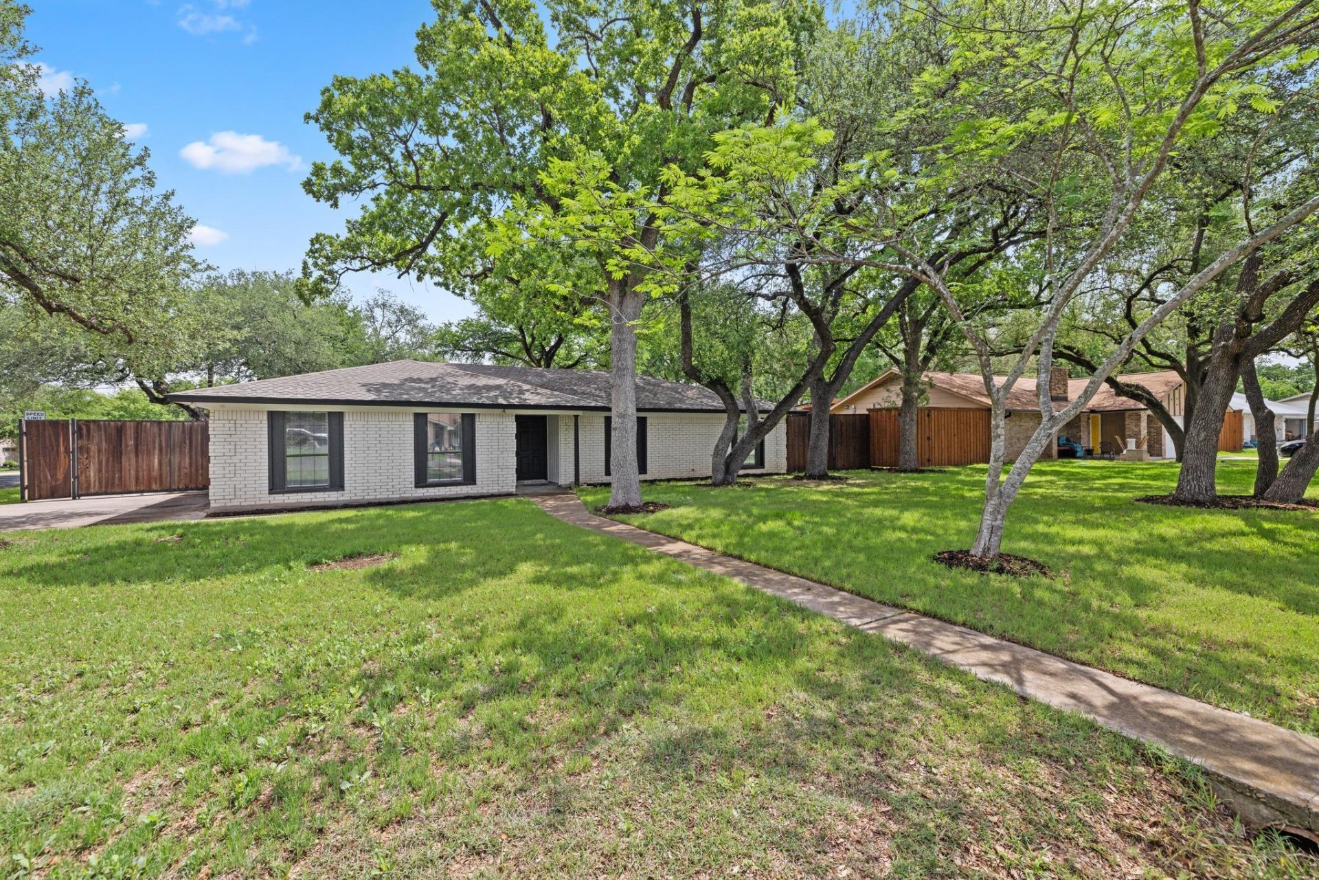 Rare find on oversized corner lot with RV/boat parking! This unique property features a side-entry double gate and a large front gate & concrete parking pad - both ideal for an RV or boat. This charming single-story home is move-in ready and offers a bright, open living area with cathedral ceilings and a fireplace. Recent upgrades include flooring, fresh interior paint, and updated bathrooms. The backyard has a large grassy lawn shaded by large mature oak trees. Located in highly rated Round Rock ISD and close to Hwy 183, Parmer Lane, SH 45, and the new Apple campus. Youre also close to shopping, dining, and Springwoods Park and Lakecreek Trail.
