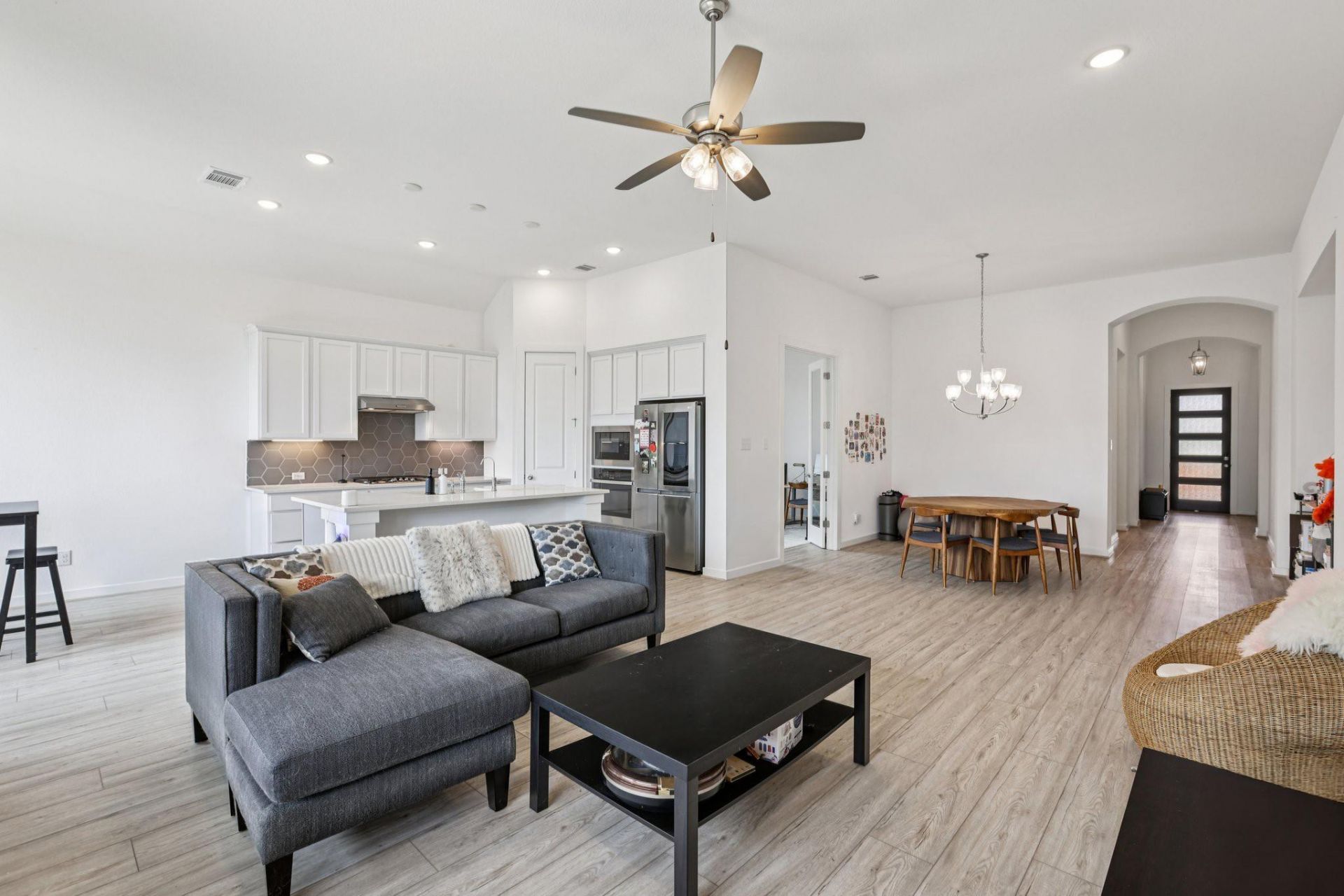 If youve been searching for your next home & want something that truly feels special, this one checks all the boxes! Built by Highland Homes, a thoughtfully designed one story, 4-bdrm+study, 3 bath home w/an open layout, soaring ceilings & large picture windows with incredible natural light, creating a bright & welcoming space from the moment you step in. Living room is lrg enough for your dream sectional sofa, perfect for everyday living, cosy nights in, and hosting friends & family. Kitchen is a standout w/center island, crisp white cabinetry, quartz countertops, gas cooktop, built-in microwave & oven, and walk-in pantry w/tons of storage-multiple cooks will love! A breakfast area w/lrg windows overlooking the backyard + a formal dining space that can easily flex to fit your lifestyle?whether you envision an extended living area, reading nook, or cozy library. Private primary suite is tucked in the back & features an extended bay window?ideal for a sitting area or reading retreat. Spa-like bathroom includes walk-in shower, relaxing soaking tub, double vanities & excellent storage+window for natural light as you get ready. Spacious walk-in closet. At the front of the home, youll find 3 great sized bedrooms and 2 full baths, offering flexibility for guests, kids, additional offices or future needs. Study w/French doors makes a perfect home office, second living area, or hobby space. This floor plan was designed for real life?with room for entertaining, overnight guests, and everything in between. Step outside to a covered patio and a large, flat backyard thats ready for weekend BBQs, relaxing evenings, and plenty of space for pets to play. At Crosswinds youll enjoy amenities- a resort-style pool, sports courts w/pickleball, parks & trails. Minutes from everything Kyle has to offer?restaurants, HEB, Costco, and easy access to I-35. This is the perfect place to start your next chapter?comfortable, flexible, and designed to grow with you.